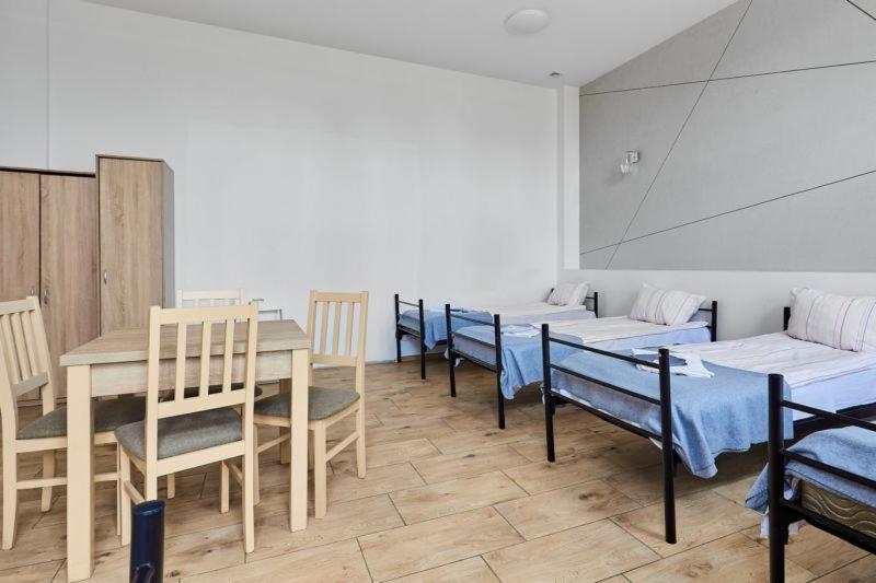 Koedukacyjny pokój wieloosobowy (6 osób). The dormitory room features heating, as well as a shared bathroom boasting a shower. The dormitory rooms kitchen, which features a refrigerator, is available for cooking and storing food. This dormitory room has a wardrobe, an electric kettle, a flat-screen TV and an outdoor dining area. The unit has 6 beds. Pokój Wieloosobowy - 6 osobowy. Powierzchnia pokoju ok.: 35 mkw.