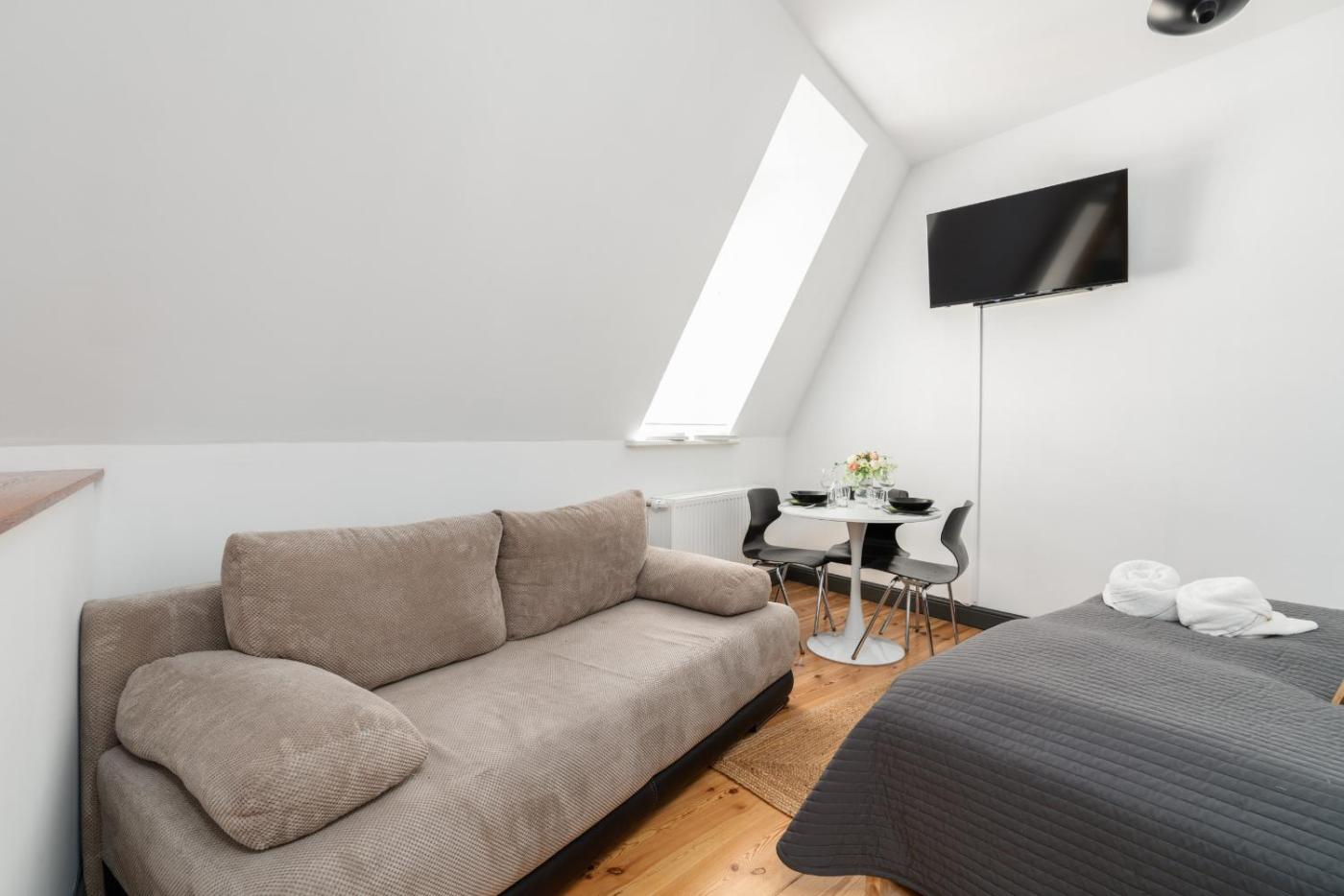Studio. The studio features a private bathroom, a private entrance, a tea and coffee maker, as well as a seating area with a flat-screen TV. Meals can be prepared in the well-fitted kitchenette, which comes with a refrigerator, kitchenware and a microwave. This studio has a dining area, a wardrobe, TV, as well as chocolate for guests. The unit offers 2 beds. Studio - 5 osobowy. Powierzchnia pokoju ok.: 19 mkw.