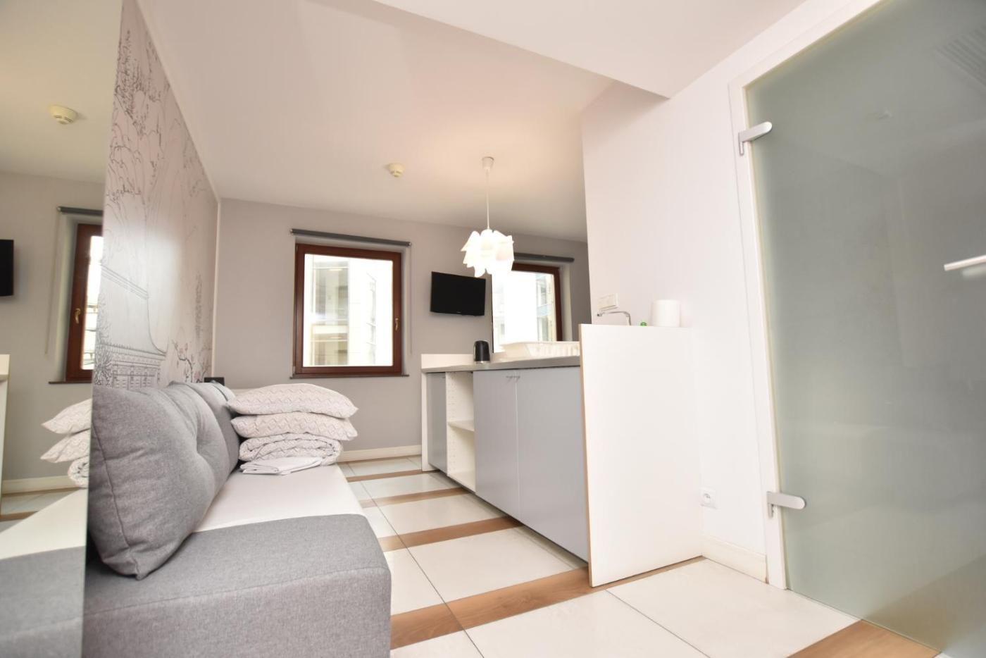 Studio typu Superior. The studio features a washing machine, a tea and coffee maker, as well as a private bathroom boasting a shower and a hairdryer. The fully equipped kitchenette has a stovetop, a refrigerator, kitchenware and a microwave. This studio features parquet floors, heating, a flat-screen TV and a patio. The unit has 2 beds. Studio - 4 osobowy. Powierzchnia pokoju ok.: 25 mkw. ;